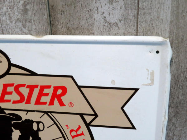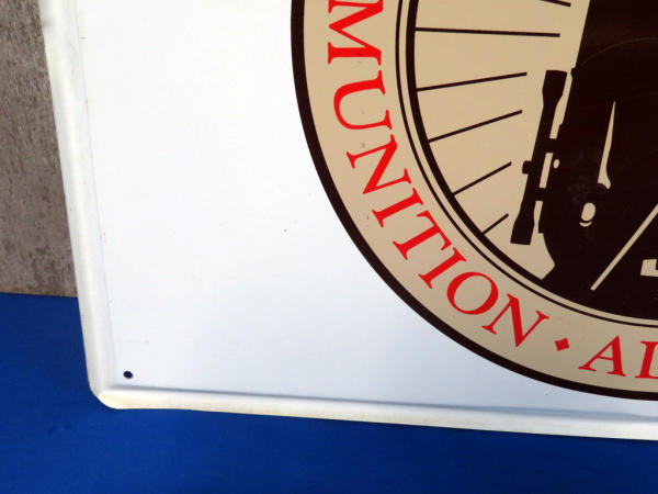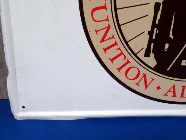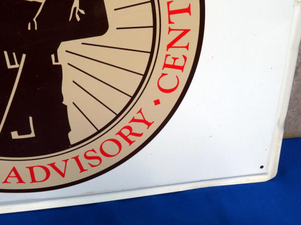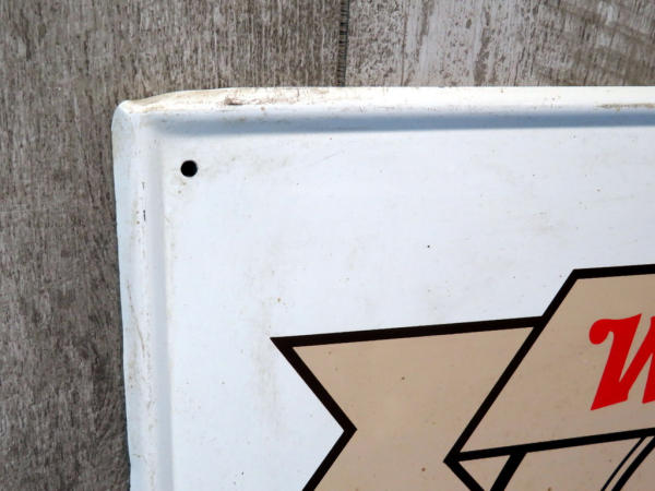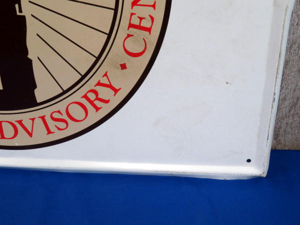 Double Sided Tin, self framed; painted metal; has some scuffs from storage, overall one side rates an 8 condition and other is a 9; 24"x18"