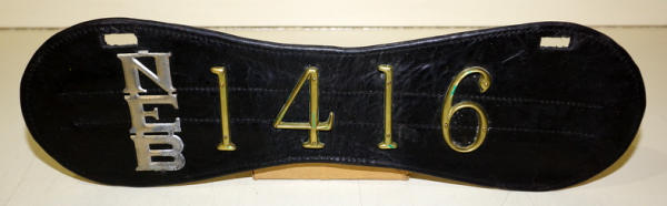 Alum NEB tag, brass letters, nearly 20" long, really clean and nice, slightly cracking in the center