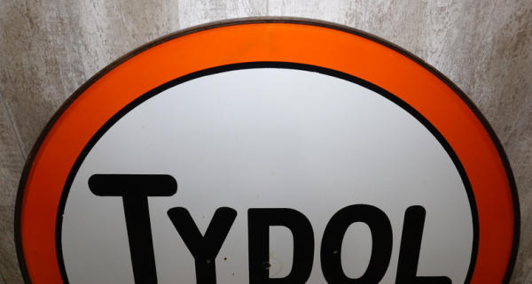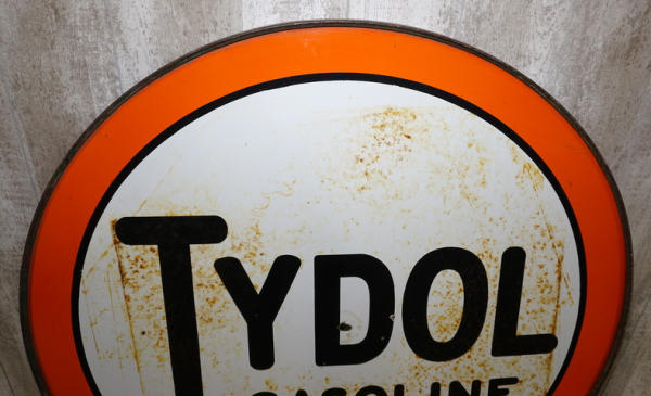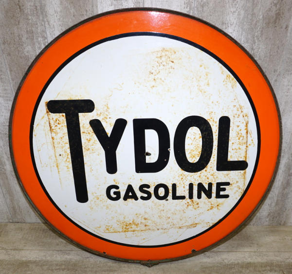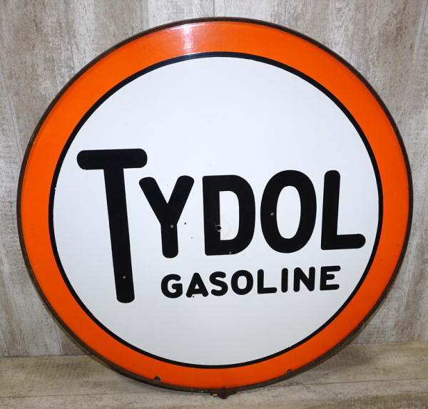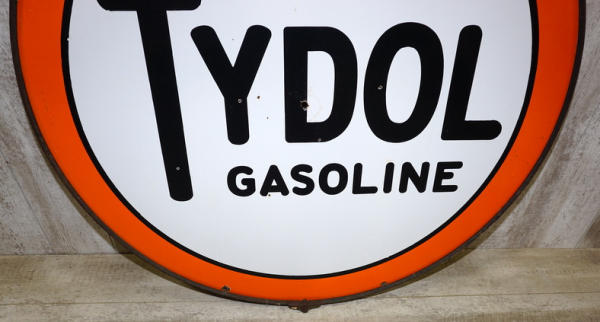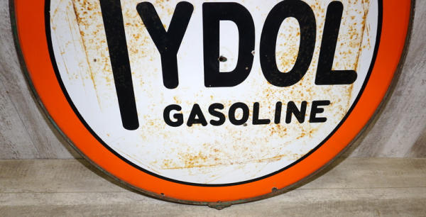 42" diam, original steel ring, only a few small chips on one side, but a small hole in the dead center; reverse side has some rust stains that would probably clean off, rates 8 condition overall