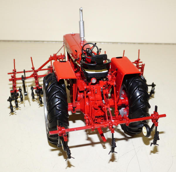 precision tractor with high-detail cultivator added, probably a LeMars Toy Store custom, looks great