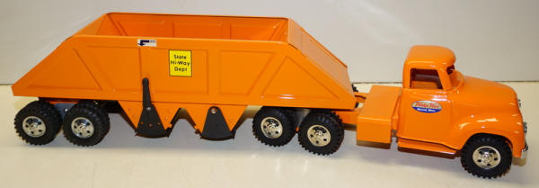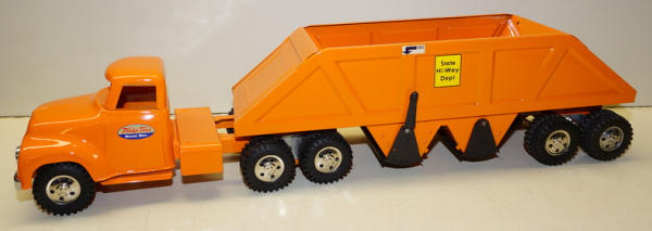 Old Tonka parts restored & customized into a center dump Trailer, looks good