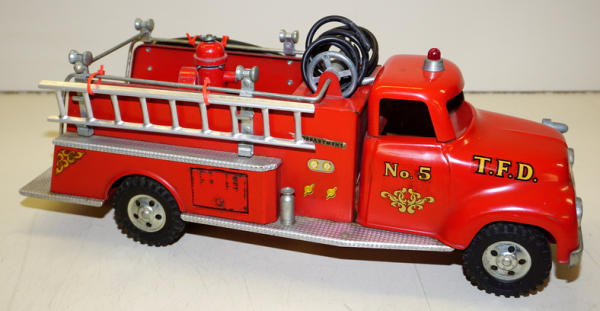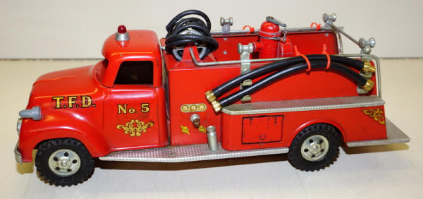 pretty nice original, paint is about 90% on the cab, shows some more play wear on the pumper body, looks to be complete