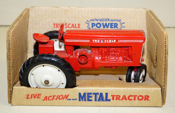 Tractor is 95% Condition with some chips on the noise and light wear, box is pretty good, a little discolored from age, box rates 8 condition