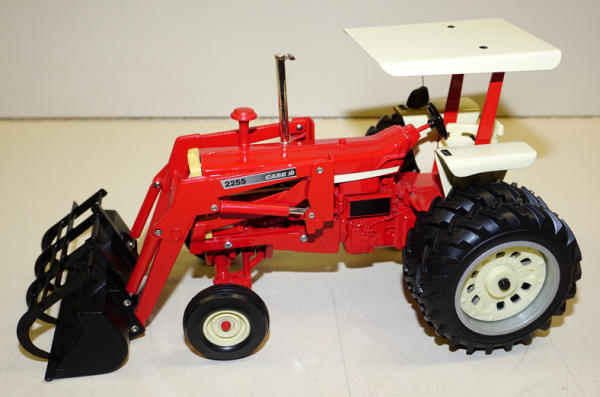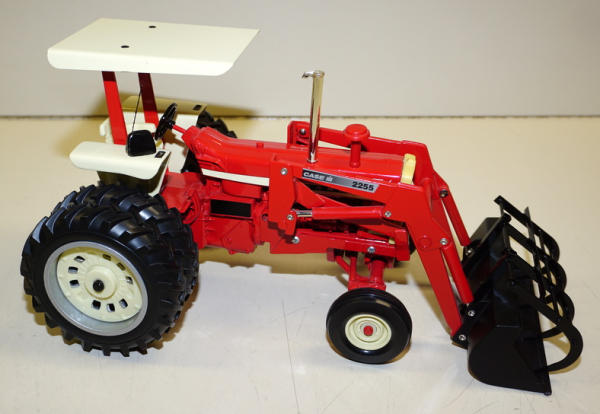 Ertl tractor customized, plastic parts have yellowed with age, radio added, grapple scratch built