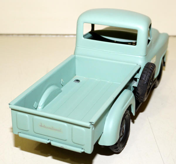 average repaint, flat green paint, has some dings in the metal