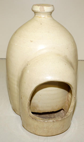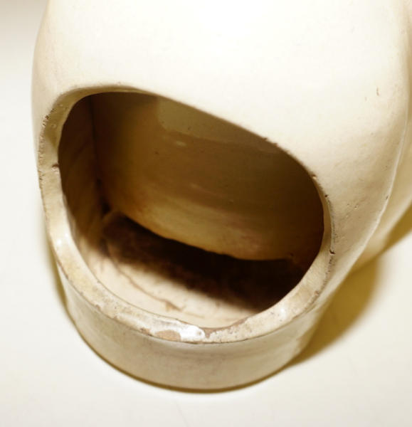 about 11" tall, has a chip on the top and around the openings, no makers mark