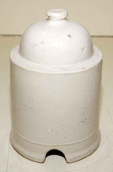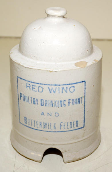 6.5" tall, has a chip on the rim of the top, no base; rare little waterer!