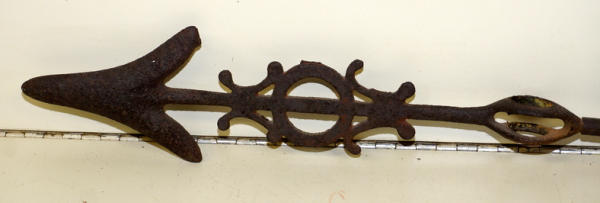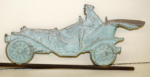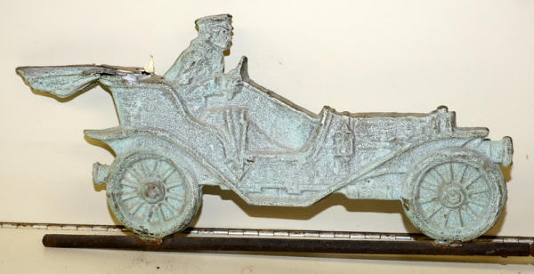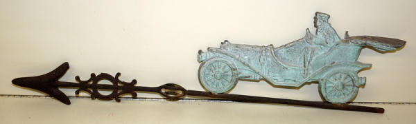 29" long, 8" tall, automobile has some damage to the convertible top, good patina, hard to find & desirable arrow