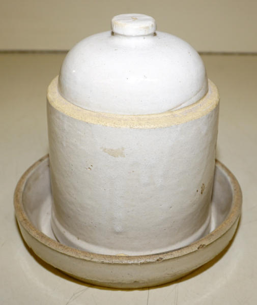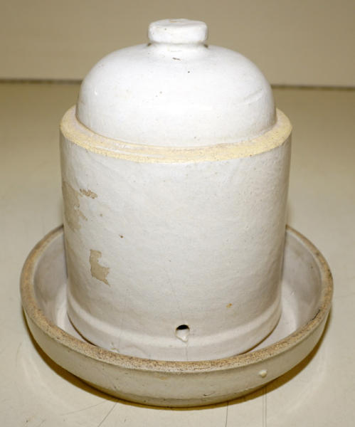 few light hairline cracks in the top and few small chips on the base, nice small waterer