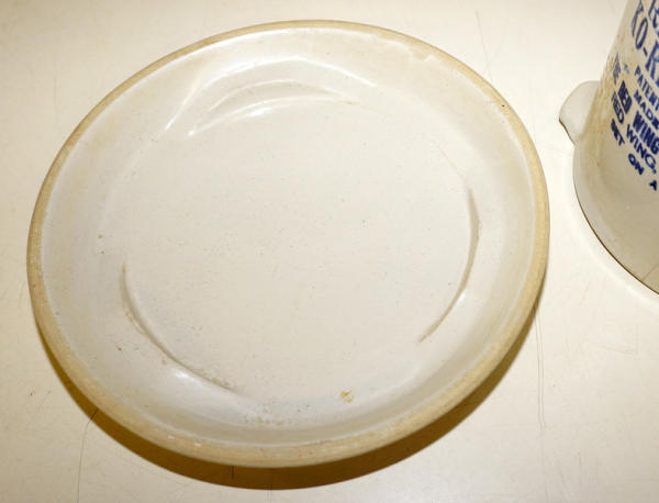 has a hairline crack in the top, base has a crows foot in the bottom; factory error with some smeared blue ink on the side