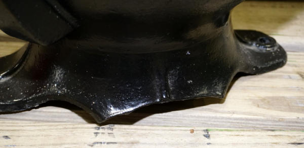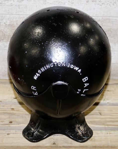 nicely repainted, good lettering, ball has some pits, one of the feet on the base is broken off