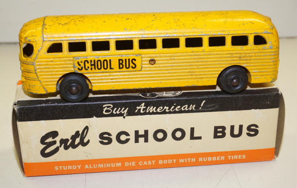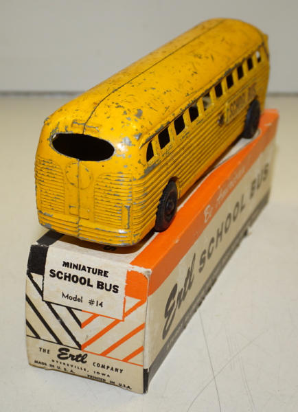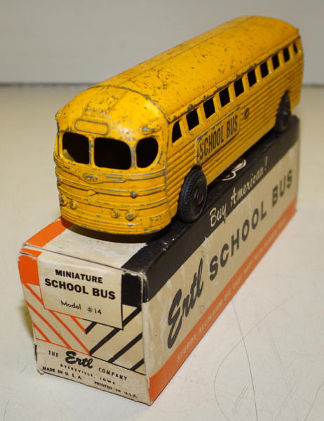 9.5" long, cast aluminum, paint is about 80%; original box is complete with some wear, box rates 8 condition; very unusual Ertl toy