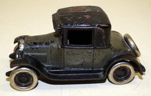 8" long, paint is about 75%, most of the paint loss is on the roof top