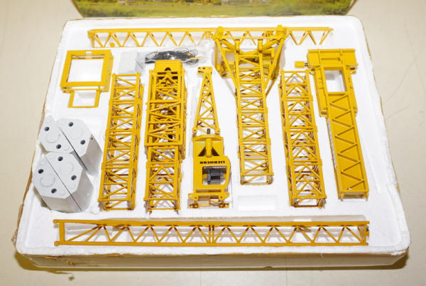 NIB, toy is clean and never assembled, box has some water stains and wear, complete