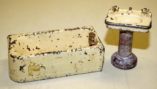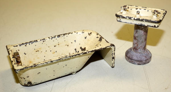 Tub is 6" long and good original, Sink base has been replaced or paint stripped, sells 2x the money
