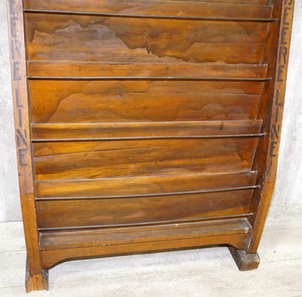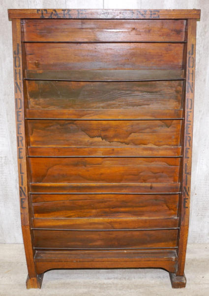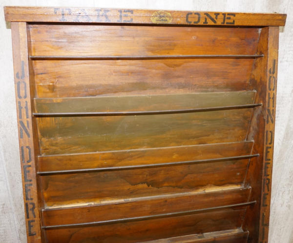 32"x53", original finish, original stenciling is good, original decal at the top is dark, but still there, has a piece missing on the bottom of the wood; could be remade; comes with the original wood casters; rare piece, I think only the 3rd one we have ever offered; no shipping, pickup in Wakonda only