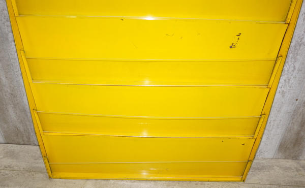 36" wide, 44" tall, comes with the original legs too, pretty clean and nice, few light scuffs; plexiglass holders are not original, never seen this piece before