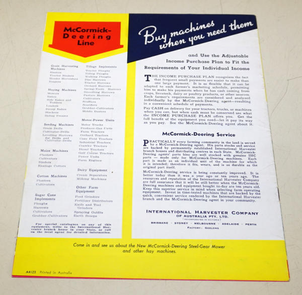 16 pages, near mint, has Horse & Tractor Drawn mowers plus rakes