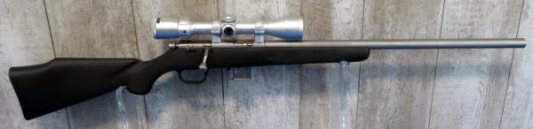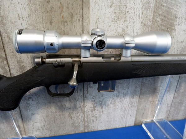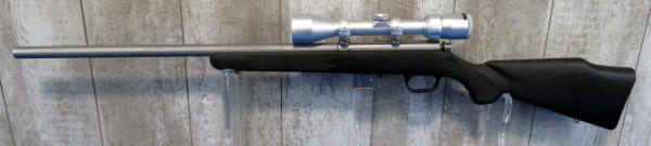 22" Varmint Stainless Barrel; black synthetic stock; two removable magazines; smooth action; minor use; Bushnell 3-9x40 Scope is very clear; SN#04541970