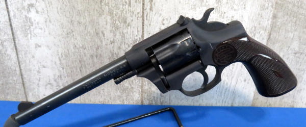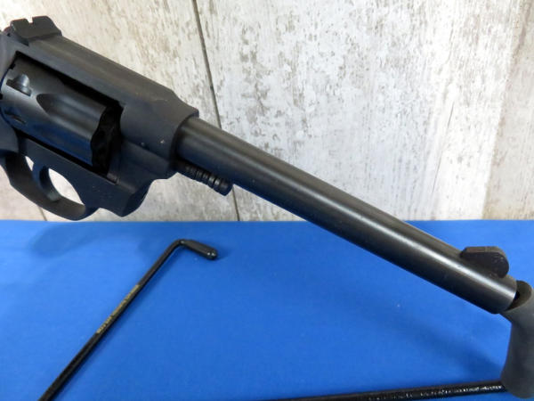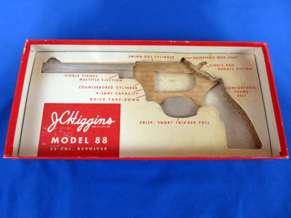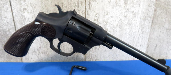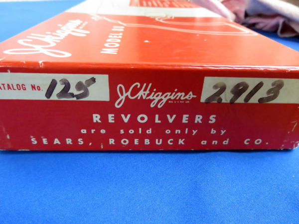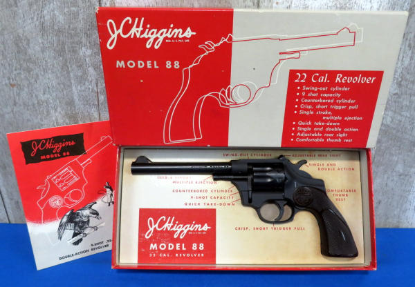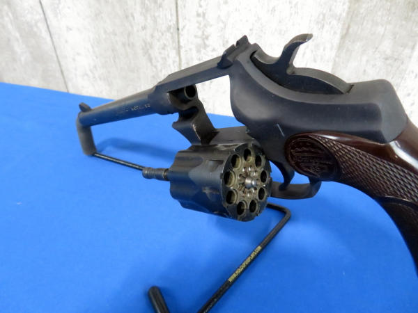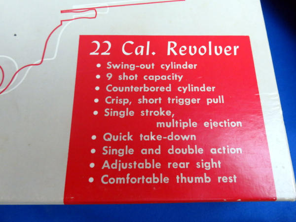 appears mint & unfired; 6" BBL; 9-shot swing out cylinder; original graphic box & paperwork; plastic (tenite?) factory grips; SN#2913