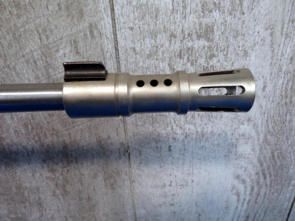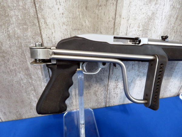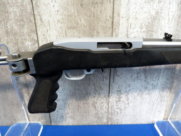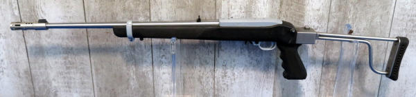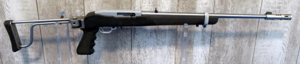 18.5" Stainless Barrel w/2.25" Flash Hider; NO Magazine; stock folds; Black synthetic stock w/pistol grip; has some minor use marks but overall very nice; SN#259-61235