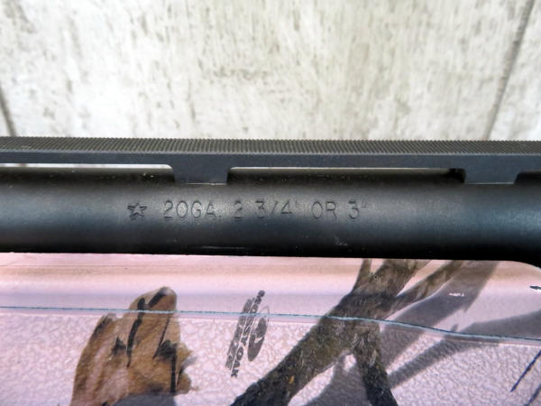 21" VR-BBL; flat black finish to metal; Mossyoak Blaze Pink Camo; smooth action; 2.75" & 3" chamber; MC Rem choke; SN#RS27883R