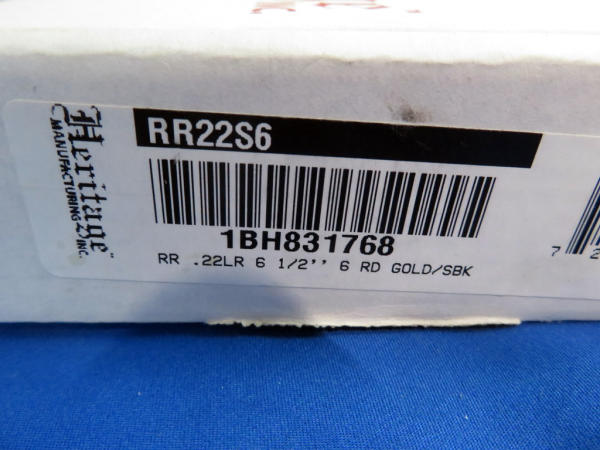 6.5" Gold Finish Barrel; mint & unfired; NIB; black star poly grips; SN#1BH831768