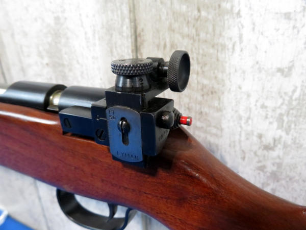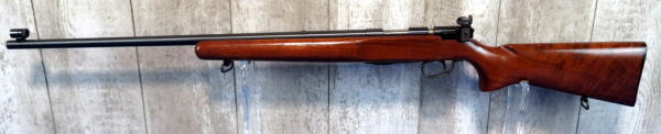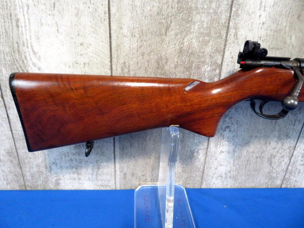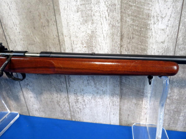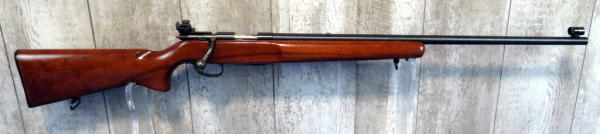 24.5" BBL; smooth action; has Lyman rear peep sight & Redfield globe front sight; wood is nice w/a couple minor scratches; removable magazine; nice thick target forearm; no SN#