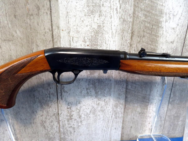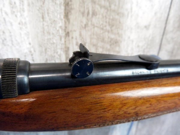 19" BBL; has a rare hard to find rear wheel sight; nice light colored wood stock; factory engraved receiver; Grade 1 version; receiver tube in stock; SN#T72061
