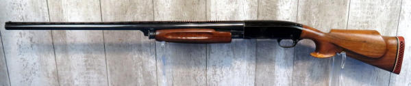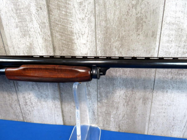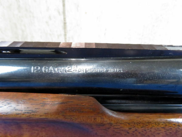 30" VR-BBL; vent looks to be aftermarket; has custom target stock w/maple wood tip oversized pistol grip; wood is very nice, receiver has scratches; 2.75" chamber; FC; SN#89677