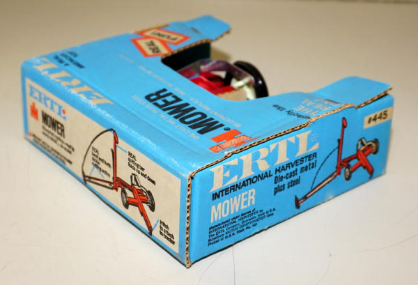mint toy, peg-wheel drive, unusual black "International" decal on the beam; box has some light crushing, but still stapled shut, box rates 8 condition