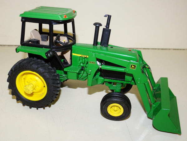 3pt w/ quick hitch, Firestone Tires on plastic rims, loader has lines running, levers added, looks good, not sure on the builder