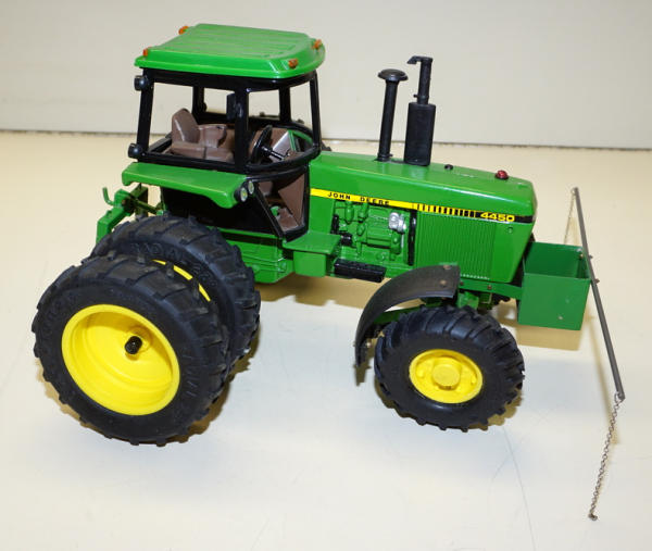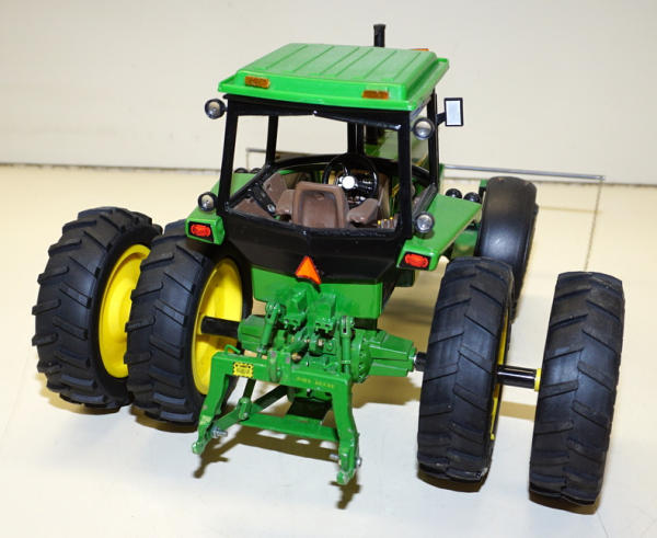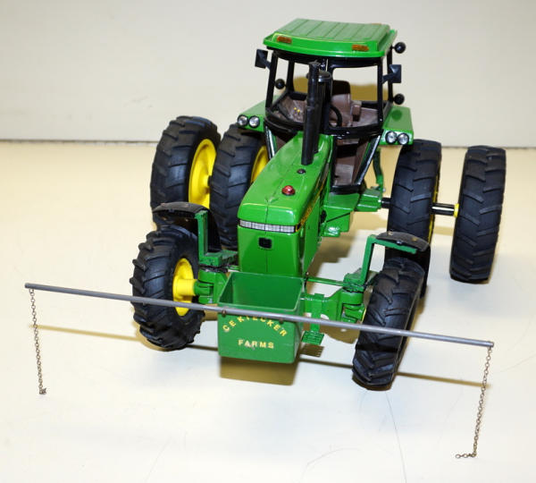 front bar on the rock box, older custom with nice detail, Firestone Tires on plastic rims, 3pt & quick hitch, front fenders, levers & lights, not sure on the builder