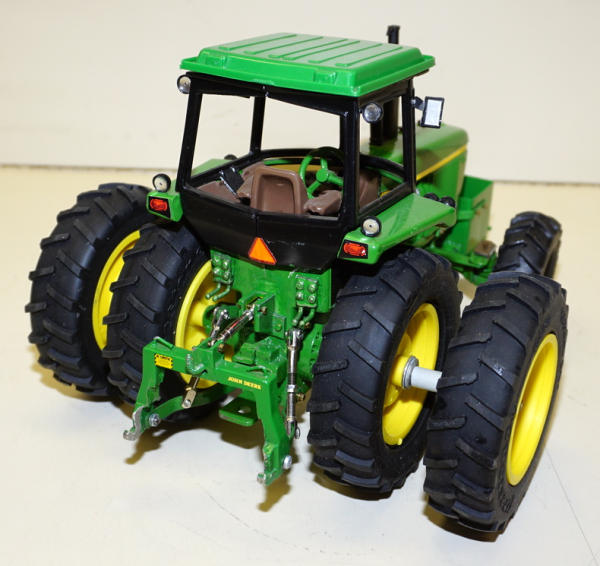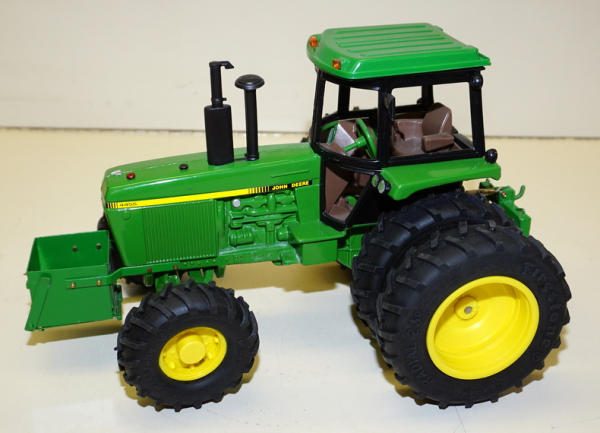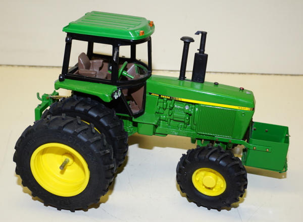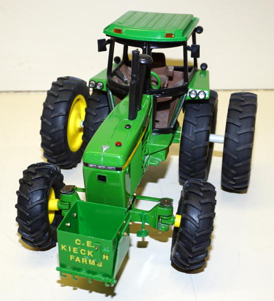 Ertl tractor that has been customized with rock box, 3pt, quick hitch, lights & more; 3pt was not painted, still steel color, and has mounts for front fenders, but they are not there, a little TLC and you'll have a nice piece