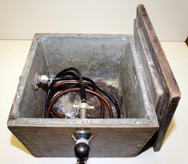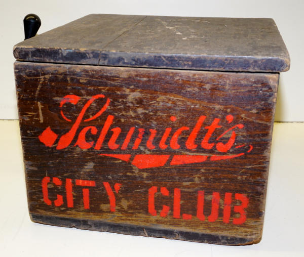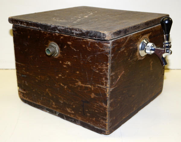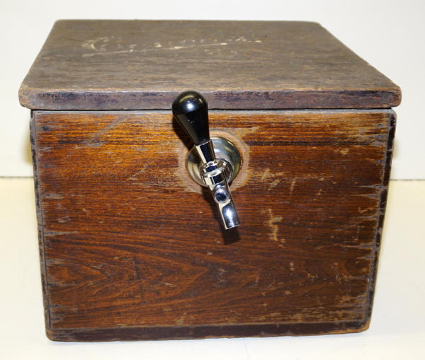 old original, looks like the paint on the side has been retouched up, but still has a good look, about 12"x15"x15"