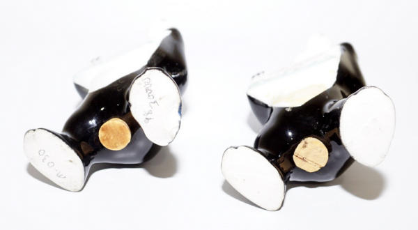 4.25" tall, both look to be near mint, one has some sticker residue that I think will clean off; made of white ceramic and not marked; not sure if these are the Red Wing versions or made in Japan