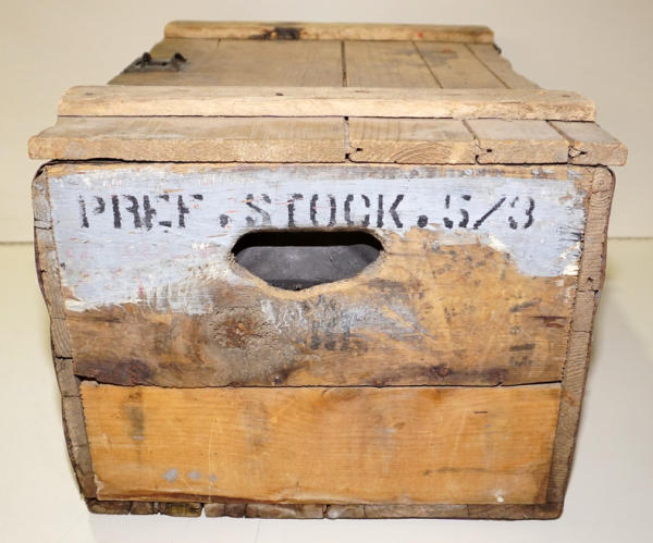 lettering on one side is pretty good, no letter on the back side, 21"x14"x11", marked "Pref Stock" on the ends