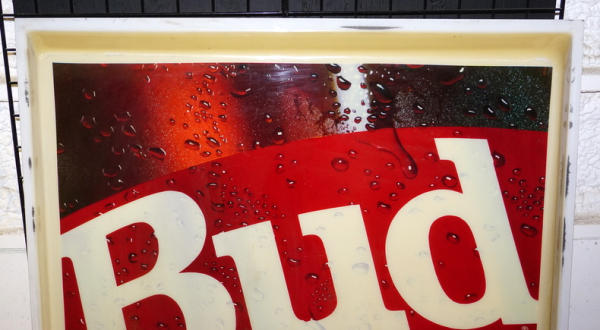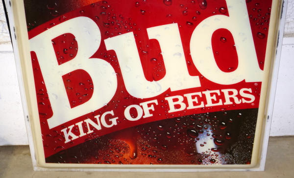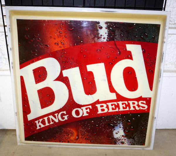49"x48", great color, a little dirty from storage, no frame or electric, plastic sign only