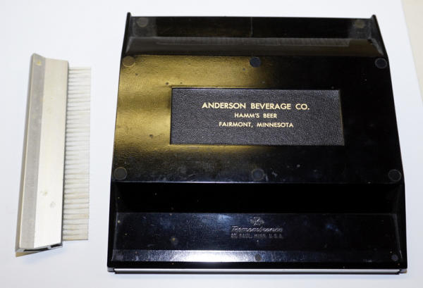 unique, 6"x6", has the advertising on the bottom, small brush clips to the back side