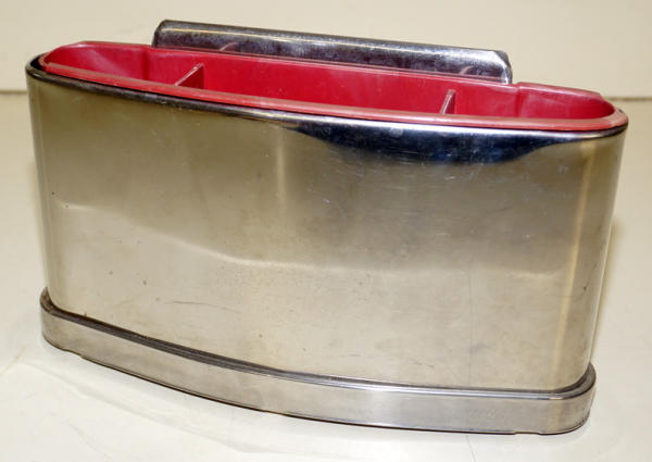 10"x6", chrome has some wear, plastic insert is chipped on the edges
