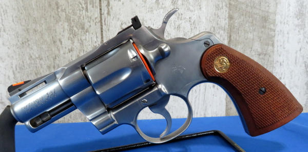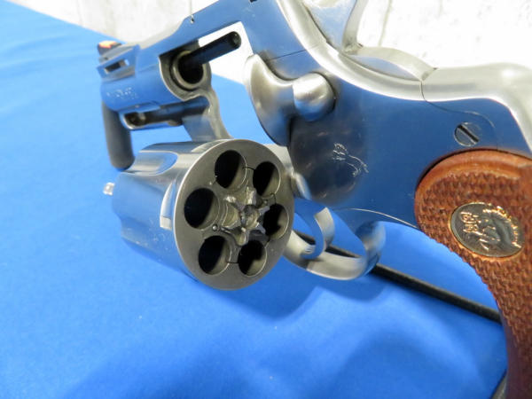 2.5" VR-Stainless Barrel; has been fired but very nice condition; wood factory checkered grips; red ramp front sight w/rear white outline; 6-shot swing out cylinder; includes factory hard case w/original cardboard box; Sn#KT7990