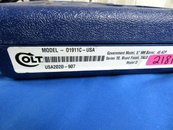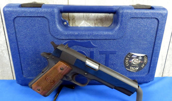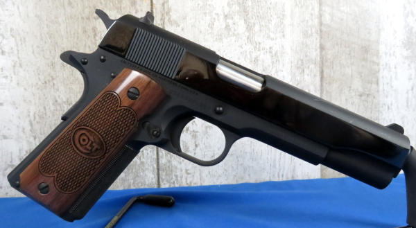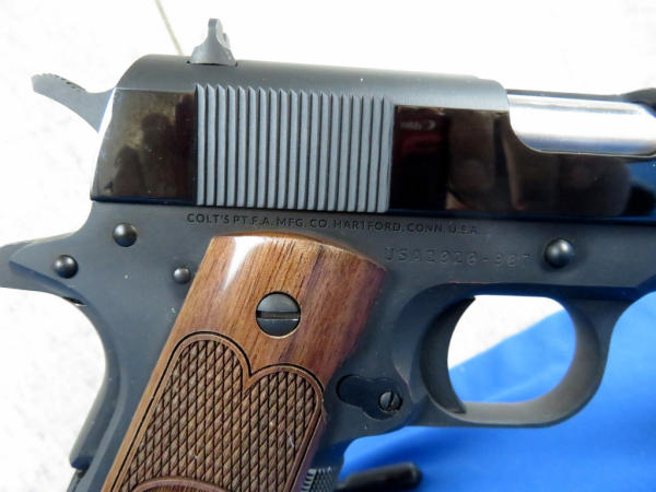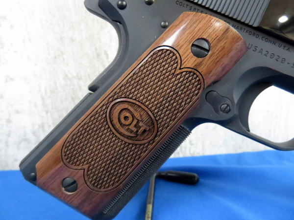 mint & unfired; Model 01911C-USA Ser.70; 5" Stainless barrel; blued finish w/fancy checkered wood grips; polished blued slide; 3-Digit SN#USA2020-907