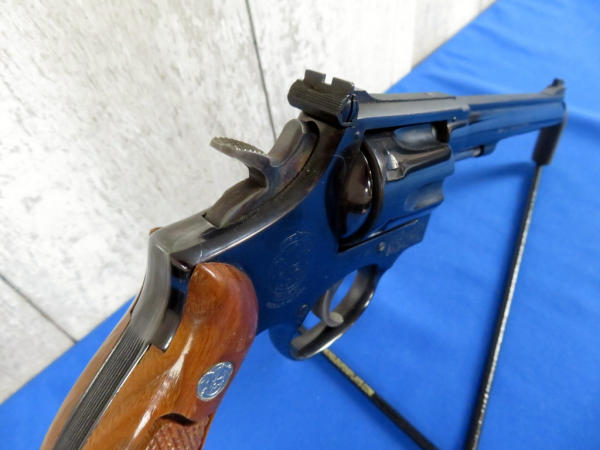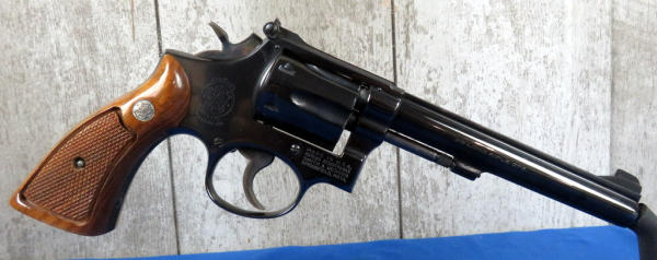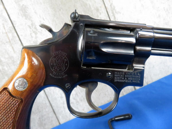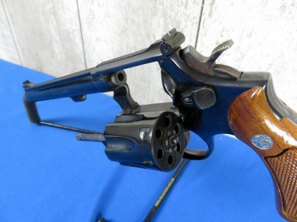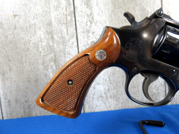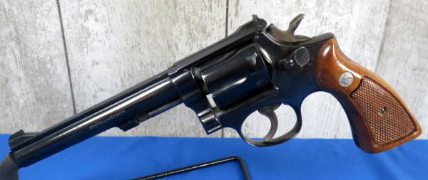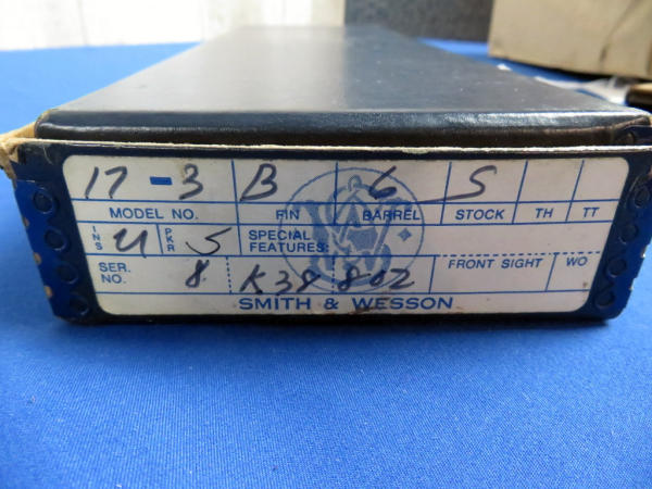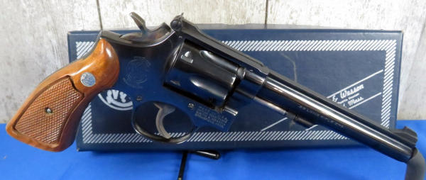 has been fired, but great condition; 6" BBL; 6-shot swing out cylinder; factory wood checkered grips; original box is nice; SN#8K38802