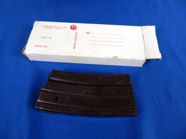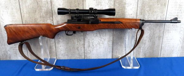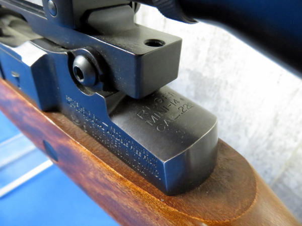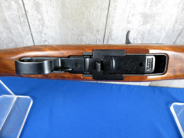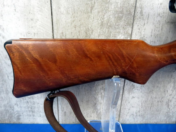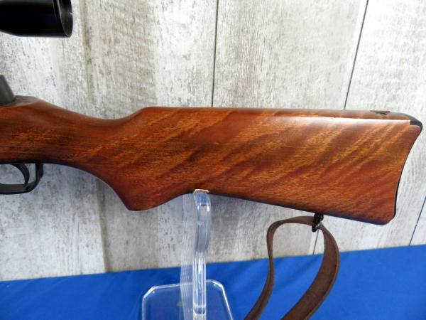 18" BBL; wood is solid w/a couple minor use & storage marks; Weaver Marksman 4x scope is clear; leather sling; has two magazines, an original 5-round and a 20-round w/original box; SN#181-11872; from the Samuel Burtwistle Estate