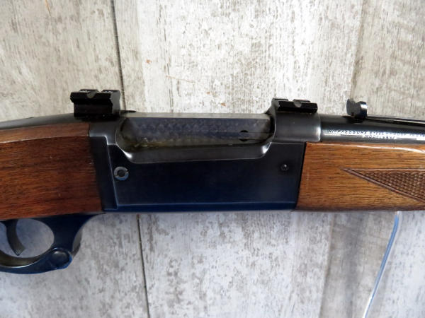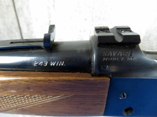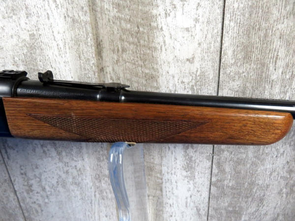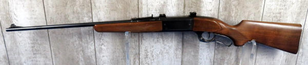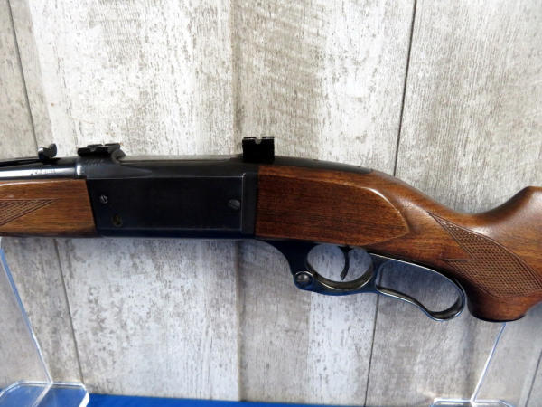 not sure on exact model, believe either a 99E or 99F; 22" round BBL; smooth action; nice bluing and wood; checkered stock w/pistol grip; scope blocks; case hardened lever; SN#931065