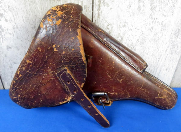 period correct; no magazine or tool; can't make out the maker stamp but does look like a 1916 on the inside; check photos; has some leather damage to top