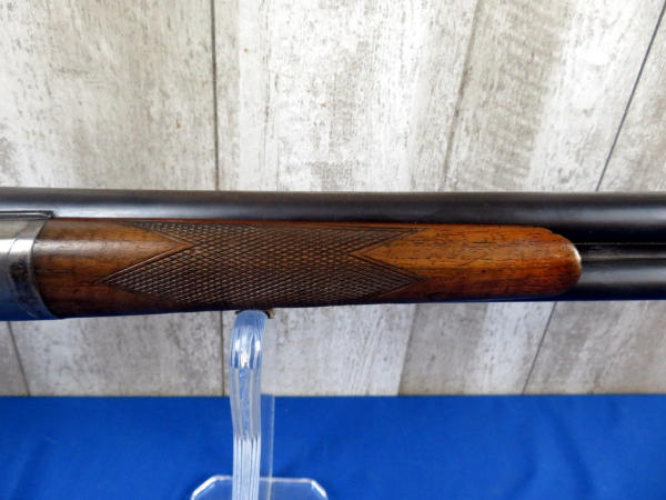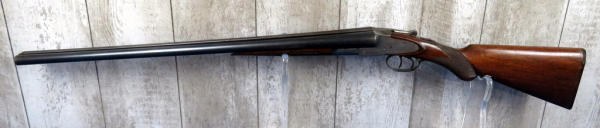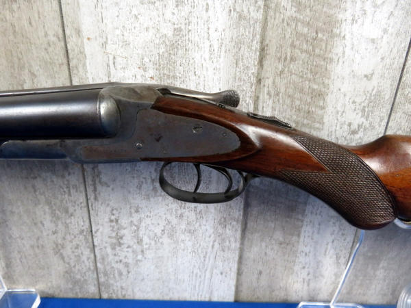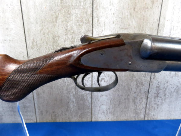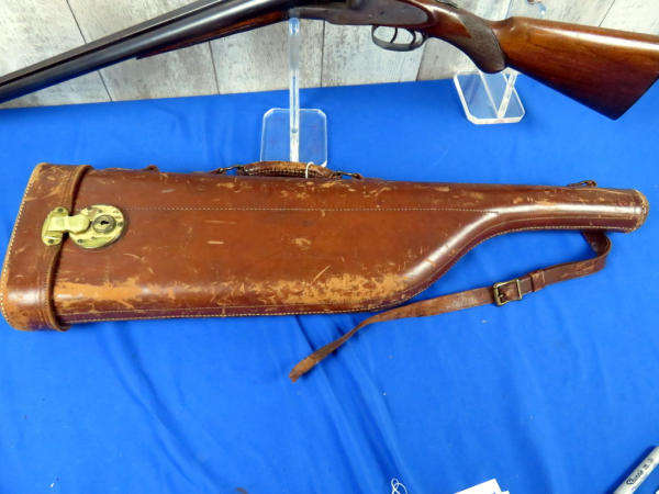 28" BBLs; break action is alittle stiff from not being used; bluing is starting to thin; stock has a minor repair on right side behind the receiver; butt plate has a chip in the top; left-CC & Right-MC; two triggers; includes a period correct leather double barrel case; case does have some marks and wear; SN#46302