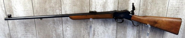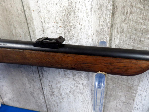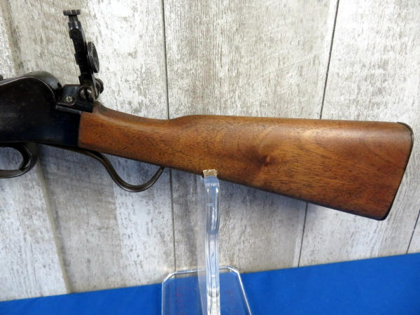 25" BBL; easy action; has bluing loss and dull finish to stock; wood is solid with hardly a mark; has rear flip up sight, wrong screws holding sight on; SN#16797