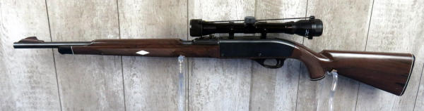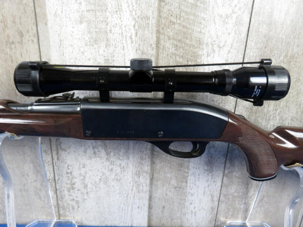 19" BBL; nylon stock overall is nice and clean with very few scratches; Tasco 4x32 Omni-View Opti-Center scope is very clear; magazine tube in stock; has some minor spotting on left side of receiver; SN#2421299