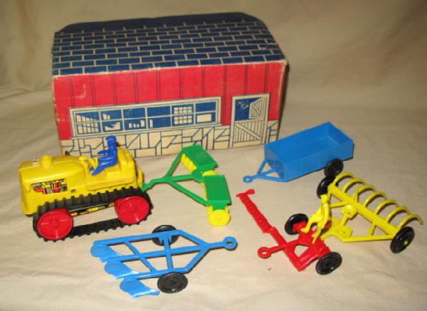 looks complete, about 1/32nd scale, box has some wear, toys are nice